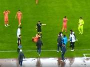 慎入,泰山B队中场艾孜海尔在对阵兰州的比赛中腿部遭遇重伤